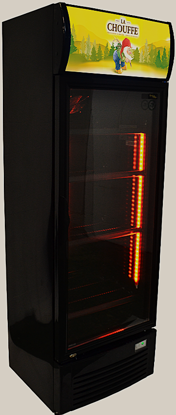 De allernieuwste ”BlackLine XXL” snelkoeler model 2026Â met logo in de lichtbak en gekleurde binnenverlichting.