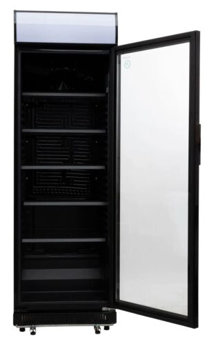 Zwarte 1-deurs displaykoeler met canopy model 2026